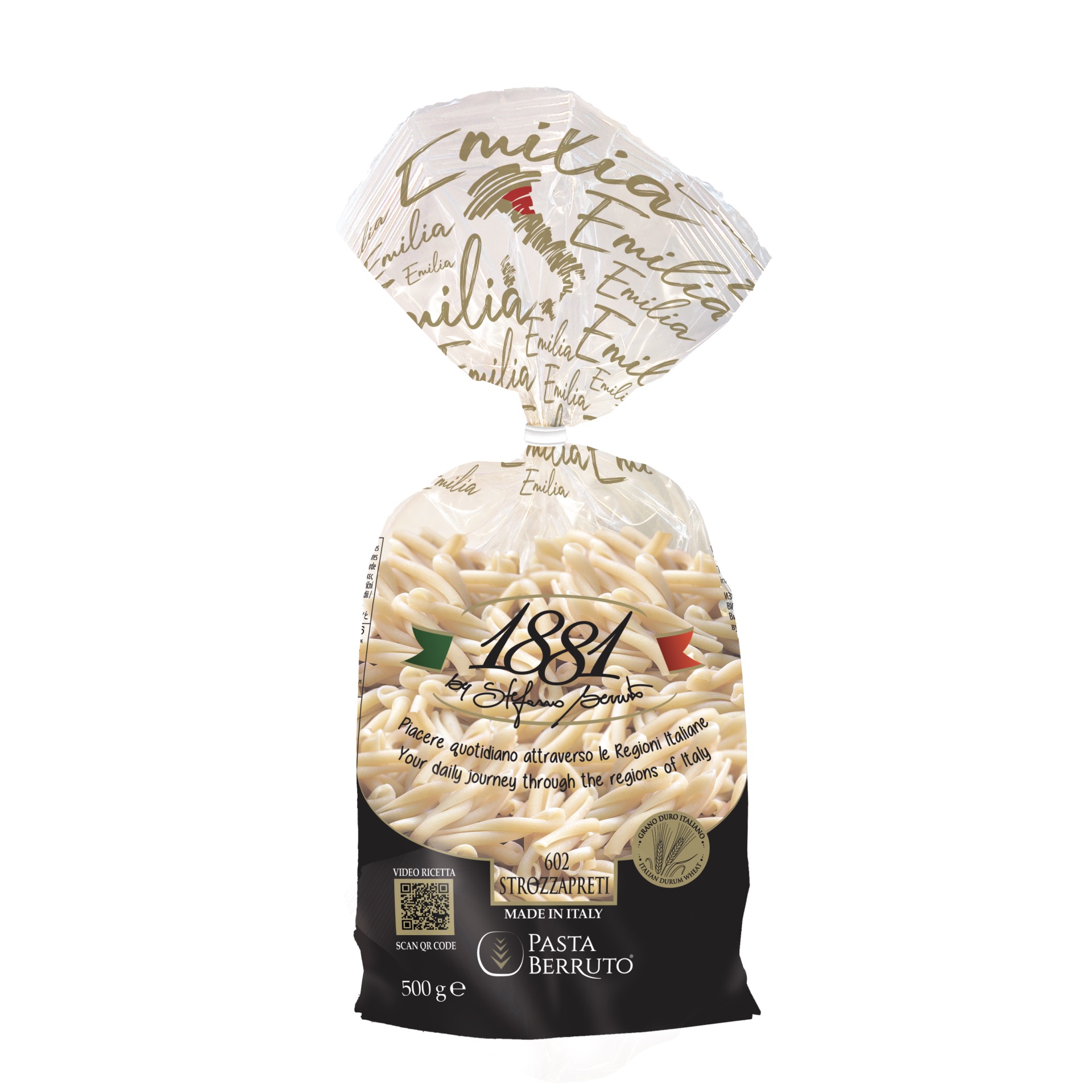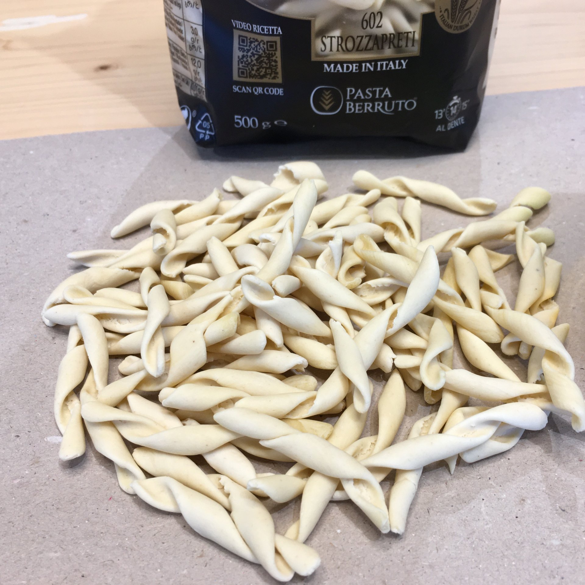 I nostri STROZZAPRETI | N°602 della Collezione 1881 by Stefano Berruto hanno un sapore unico ed autentico. Proprio per questo motivo amiamo produrli con solo grano italiano. Hanno una ottima tenacia in cottura. Inoltre rilasciano profumo ed aroma naturale del grano. La gramolatura gli dona una superficie molto POROSA e GREZZA come la tradizione vuole.