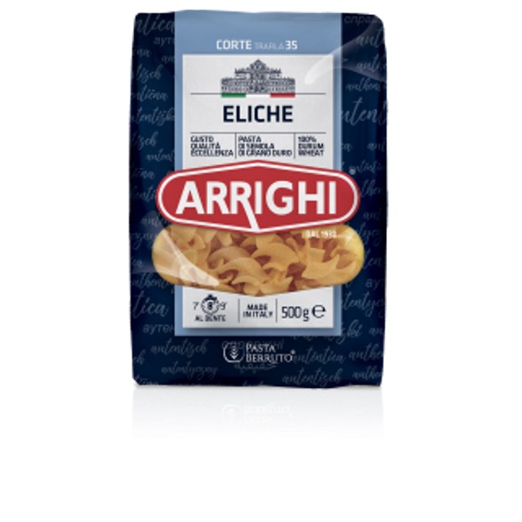 Le nostre ELICHE | N°35 fanno parte della grande selezione di Pasta ARRIGHI prodotta solo ed esclusivamente con semola di grano duro. Questo formato speciale intrappola il sugo all’interno della sua magnetica spirale. Bello da vedere e squisito in abbinamento a moltissime varietà di condimenti. Le Eliche si caratterizzano per la loro grande versatilità e sono perfette per accogliere il sugo.