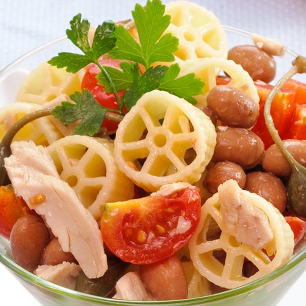 Ideali per insalate di pasta. Per un piatto di sicuro successo fra grandi e piccini provate le Ruote con un saporito pesto di basilico fresco frullato in olio d'oliva, guarnito con pomodori, fagiolini lessati e mozzarella tagliata a cubetti.