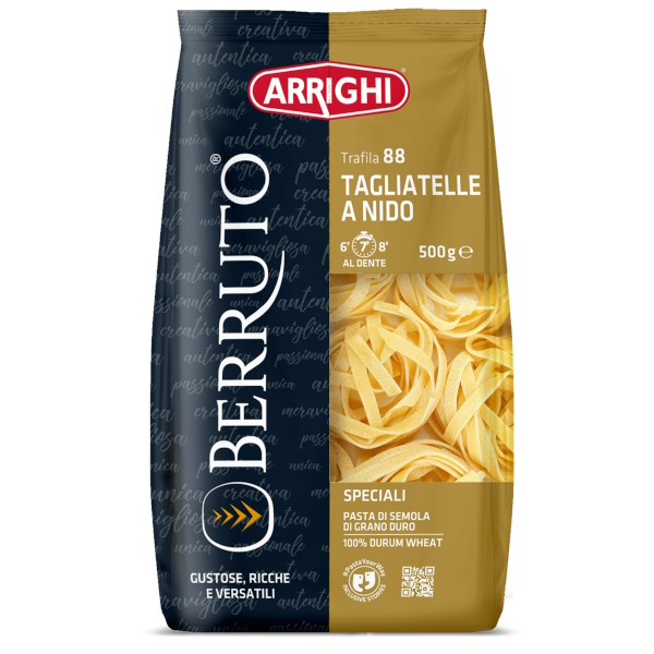 Le nostre TAGLIATELLE A NIDO | N°88 fanno parte della grande selezione di Pasta ARRIGHI prodotta solo ed esclusivamente con semola di grano duro. Dalla sfoglia piatta e corposa, le nostre Tagliatelle si ispirano alla più autentica tradizione regionale italiana.