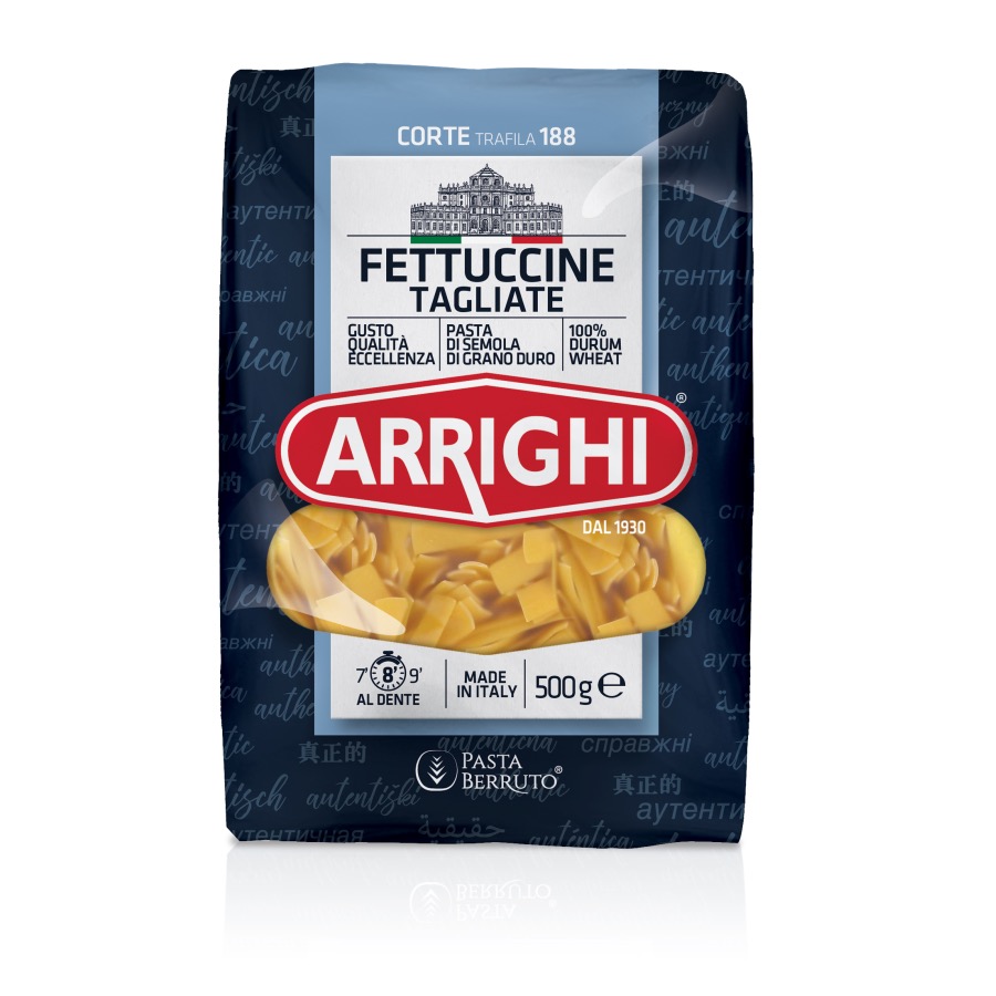 Le nostre FETTUCCINE TAGLIATE | N°188 fanno parte della grande selezione di Pasta ARRIGHI prodotta solo ed esclusivamente con semola di grano duro. Ideale per zuppe e brodo. Si sposano perfettamente con una gustosa crema di lenticchie, guarnita con mandorle tritate e prezzemolo. Questo formato speciale lo apprezzerai al primo morso per la sua ottima tenuta in cottura.